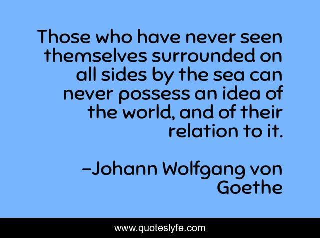 This page presents the quote "Those who have never seen themselves surrounded on all sides by the sea can never possess an idea of the world, and of their relation to it.". Author of this quote is Johann Wolfgang von Goethe. This quote is about insightful, inspriation, inspriational-thoughtful, wisdom,.