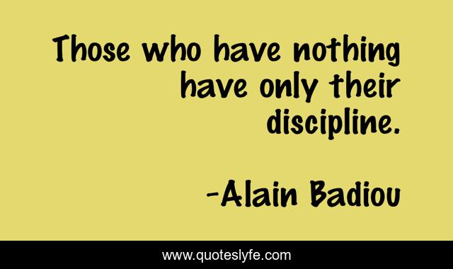 This page presents the quote "Those who have nothing have only their discipline.". Author of this quote is Alain Badiou. This quote is about badiou, discipline, subalternity,.