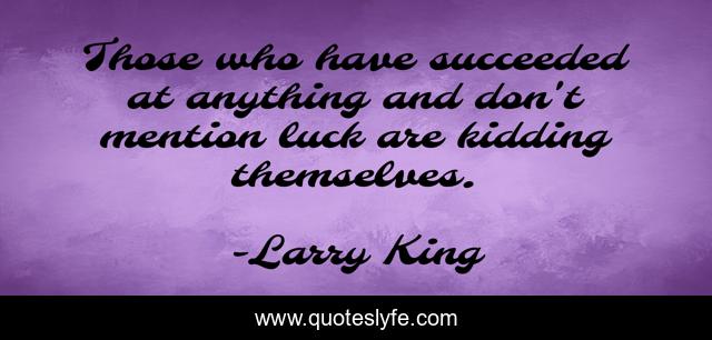 This page presents the quote "Those who have succeeded at anything and don't mention luck are kidding themselves.". Author of this quote is Larry King. This quote is about themselves, anything, luck,.