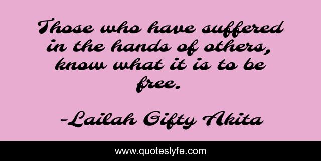 This page presents the quote "Those who have suffered in the hands of others, know what it is to be free.". Author of this quote is Lailah Gifty Akita. This quote is about suffering-of-humanity, freedom, freedom-of-thought, suffering-life, suffering,.