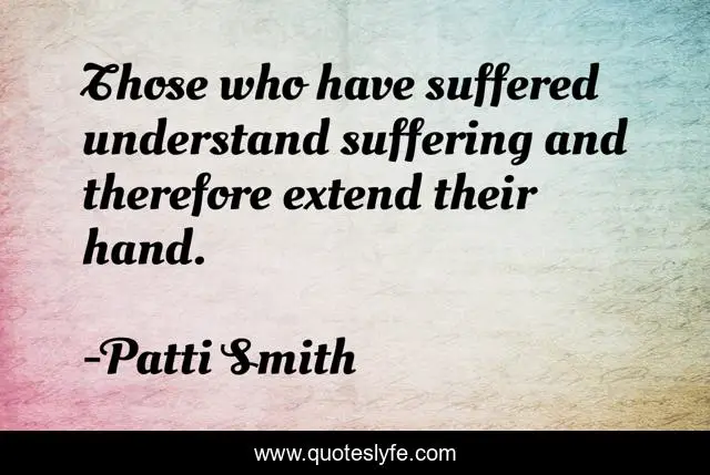 This page presents the quote "Those who have suffered understand suffering and therefore extend their hand.". Author of this quote is Patti Smith. .