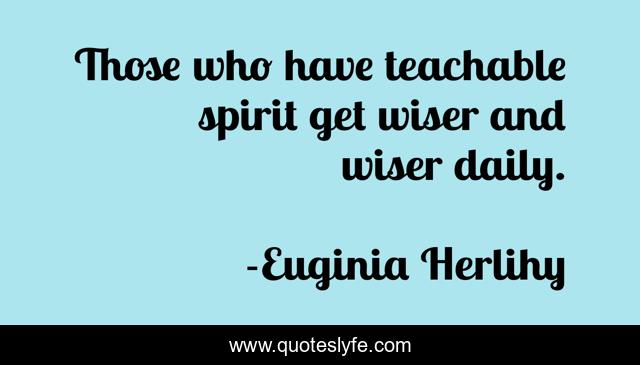 This page presents the quote "Those who have teachable spirit get wiser and wiser daily.". Author of this quote is Euginia Herlihy. .