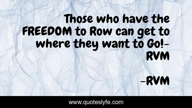This page presents the quote "Those who have the FREEDOM to Row can get to where they want to Go!- RVM". Author of this quote is RVM. This quote is about motivation, inspiration,.