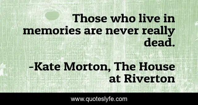 "Kate Morton, The House at Riverton Quotes." Quoteslyfe.com, 2025. Sat. 06 Dec. 2025. <https://www.quoteslyfe.com/quote/Those-who-live-in-memories-are-never-21647>.