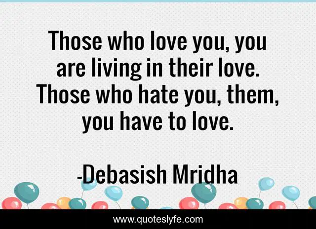 This page presents the quote "Those who love you, you are living in their love. Those who hate you, them, you have to love.". Author of this quote is Debasish Mridha. This quote is about life, love, knowledge, inspirational, intelligence, philosophy, wisdom, quotes, affection,.