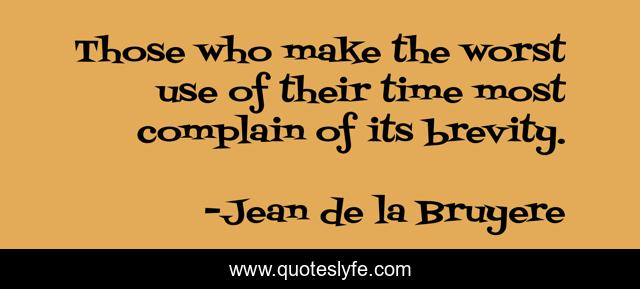 This page presents the quote "Those who make the worst use of their time most complain of its brevity.". Author of this quote is Jean de la Bruyere. This quote is about day, one,.