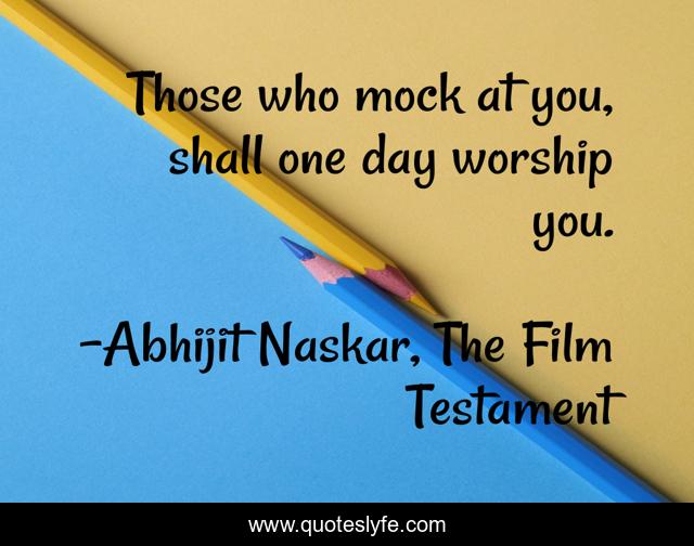 "Abhijit Naskar, The Film Testament Quotes." Quoteslyfe.com, 2025. Sun. 07 Dec. 2025. <https://www.quoteslyfe.com/quote/Those-who-mock-at-you-shall-one-32714>.