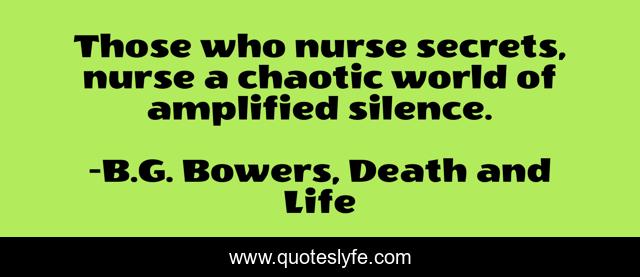 This page presents the quote "Those who nurse secrets, nurse a chaotic world of amplified silence.". Author of this quote is B.G. Bowers, Death and Life. This quote is about suicide, repression, abuse, depression, addiction, silence,.