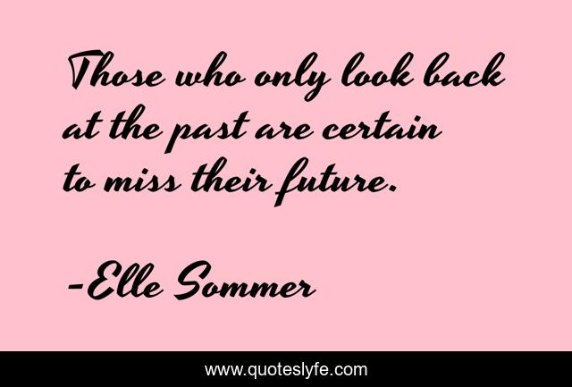 This page presents the quote "Those who only look back at the past are certain to miss their future.". Author of this quote is Elle Sommer. This quote is about missing-the-future, past, looking-back, letting-go-of-your-past,.