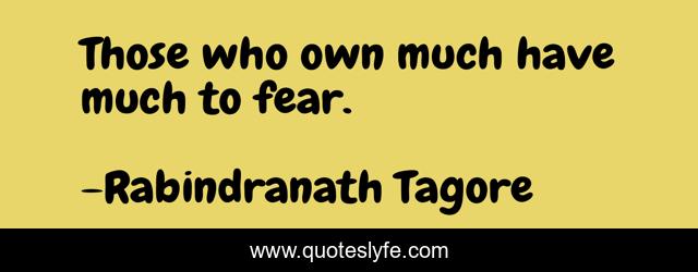This page presents the quote "Those who own much have much to fear.". Author of this quote is Rabindranath Tagore. .