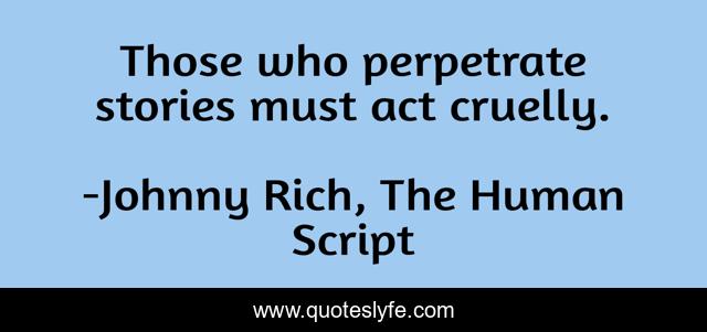 "Johnny Rich, The Human Script Quotes." Quoteslyfe.com, 2025. Sun. 07 Dec. 2025. <https://www.quoteslyfe.com/quote/Those-who-perpetrate-stories-must-act-cruelly-180663>.