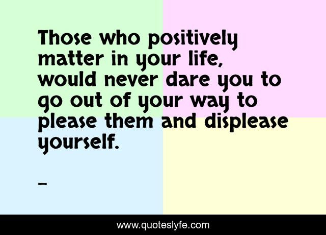 Those who positively matter in your life, would never dare you to go out of your way to please them and displease yourself.