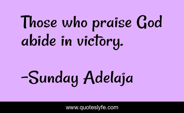 This page presents the quote "Those who praise God abide in victory.". Author of this quote is Sunday Adelaja. This quote is about victory, praise,.