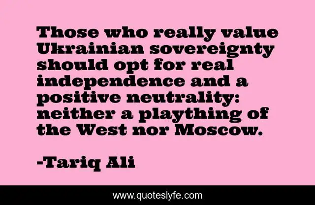 This page presents the quote "Those who really value Ukrainian sovereignty should opt for real independence and a positive neutrality: neither a plaything of the West nor Moscow.". Author of this quote is Tariq Ali. This quote is about real, positive, confidence, value,.