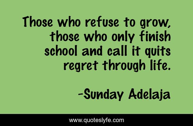 This page presents the quote "Those who refuse to grow, those who only finish school and call it quits regret through life.". Author of this quote is Sunday Adelaja. This quote is about refuse, finish, regret, life, only, school, grow,.