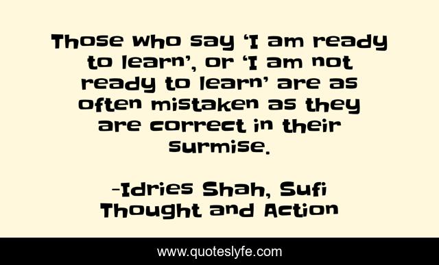 This page presents the quote "Those who say ‘I am ready to learn’, or ‘I am not ready to learn’ are as often mistaken as they are correct in their surmise.". Author of this quote is Idries Shah, Sufi Thought and Action. This quote is about sufism, sufi-wisdom, sufis, sufi-path, sufi-teacher,.