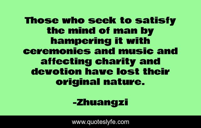 This page presents the quote "Those who seek to satisfy the mind of man by hampering it with ceremonies and music and affecting charity and devotion have lost their original nature.". Author of this quote is Zhuangzi. This quote is about nature, mind, man,.