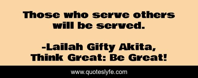 "Lailah Gifty Akita, Think Great: Be Great! Quotes." Quoteslyfe.com, 2025. Mon. 08 Dec. 2025. <https://www.quoteslyfe.com/quote/Those-who-serve-others-will-be-served-65113>.