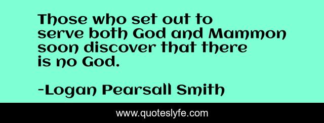 This page presents the quote "Those who set out to serve both God and Mammon soon discover that there is no God.". Author of this quote is Logan Pearsall Smith. .