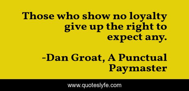 This page presents the quote "Those who show no loyalty give up the right to expect any.". Author of this quote is Dan Groat, A Punctual Paymaster. This quote is about expectations, loyalty, expectation,.