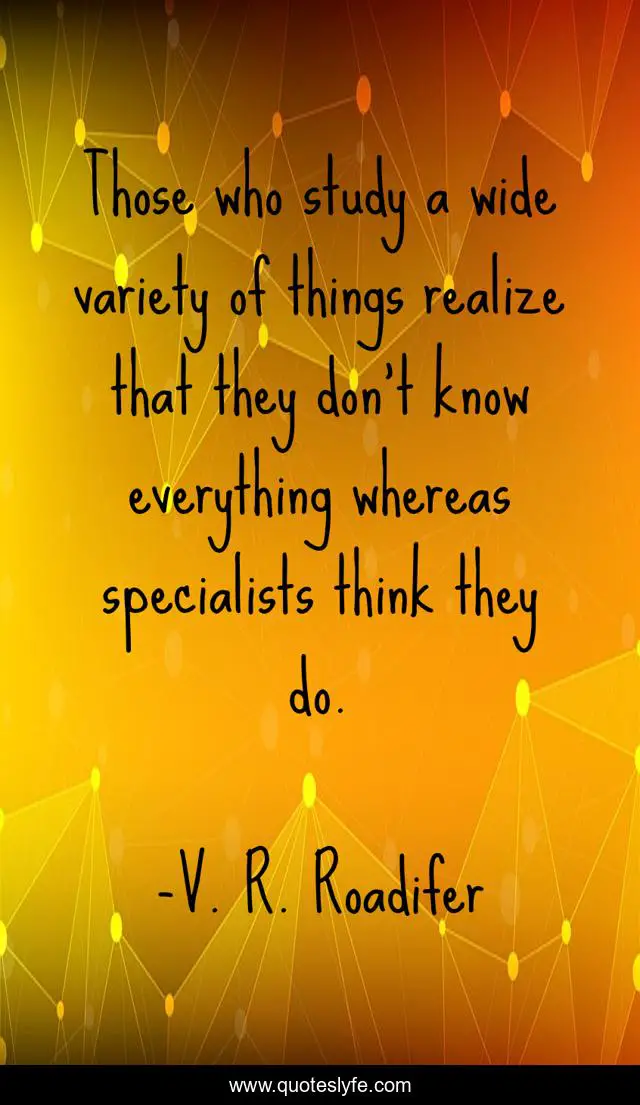 "V. R. Roadifer Quotes." Quoteslyfe.com, 2025. Sat. 06 Dec. 2025. <https://www.quoteslyfe.com/quote/Those-who-study-a-wide-variety-of-117463>.