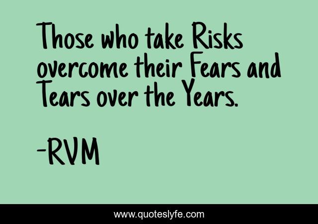 This page presents the quote "Those who take Risks overcome their Fears and Tears over the Years.". Author of this quote is RVM. This quote is about motivation, inspiration,.