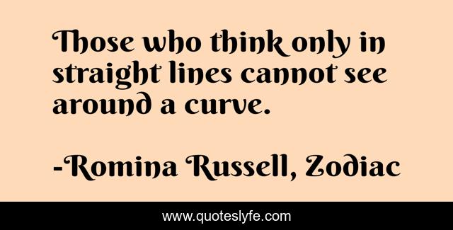 This page presents the quote "Those who think only in straight lines cannot see around a curve.". Author of this quote is Romina Russell, Zodiac. This quote is about justice, zodiac, lines, curves, truth,.