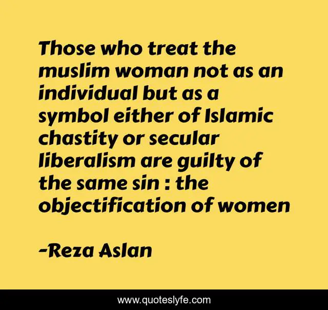 This page presents the quote "Those who treat the muslim woman not as an individual but as a symbol either of Islamic chastity or secular liberalism are guilty of the same sin : the objectification of women". Author of this quote is Reza Aslan. This quote is about religion, women-rights, feminist,.