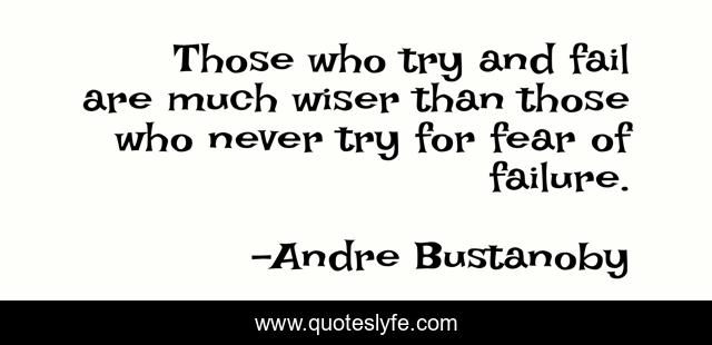 This page presents the quote "Those who try and fail are much wiser than those who never try for fear of failure.". Author of this quote is Andre Bustanoby. This quote is about failures, mistakes,.