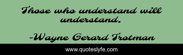 This page presents the quote "Those who understand will understand.". Author of this quote is Wayne Gerard Trotman. This quote is about intuition, insight, knowledge, understanding, wisdom,.