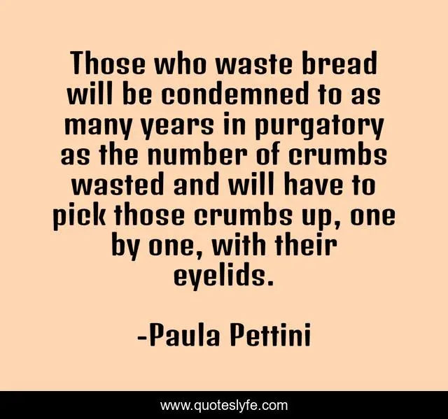 "Paula Pettini Quotes." Quoteslyfe.com, 2025. Mon. 08 Dec. 2025. <https://www.quoteslyfe.com/quote/Those-who-waste-bread-will-be-condemned-168064>.