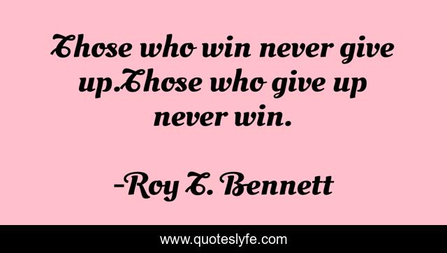 "Roy T. Bennett Quotes." Quoteslyfe.com, 2025. Sat. 06 Dec. 2025. <https://www.quoteslyfe.com/quote/Those-who-win-never-give-up-Those-14476>.