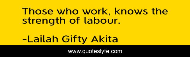 This page presents the quote "Those who work, knows the strength of labour.". Author of this quote is Lailah Gifty Akita. This quote is about humorous, inspiring, labour, work, strength,.