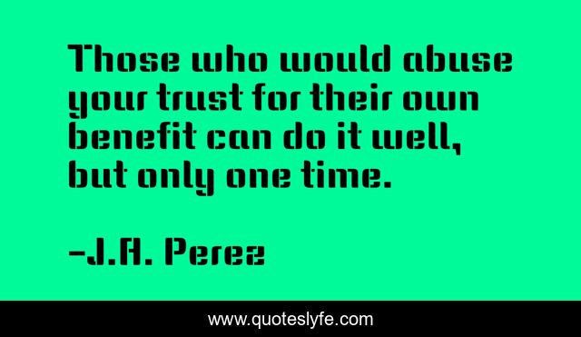 This page presents the quote "Those who would abuse your trust for their own benefit can do it well, but only one time.". Author of this quote is J.A. Perez. This quote is about benefit, trust, ja-perez, abuse,.