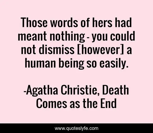 "Agatha Christie, Death Comes as the End Quotes." Quoteslyfe.com, 2025. Mon. 08 Dec. 2025. <https://www.quoteslyfe.com/quote/Those-words-of-hers-had-meant-nothing-175173>.