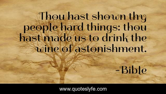 This page presents the quote "Thou hast shown thy people hard things: thou hast made us to drink the wine of astonishment.". Author of this quote is Bible. .
