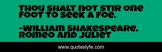 This page presents the quote "Thou shalt not stir one foot to seek a foe.". Author of this quote is William Shakespeare, Romeo and Juliet. This quote is about prohibitions, aggression, enemies,.