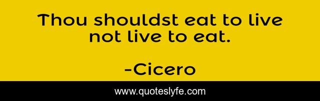 This page presents the quote "Thou shouldst eat to live not live to eat.". Author of this quote is Cicero. .