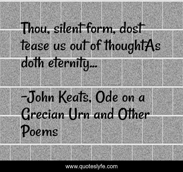 "John Keats, Ode on a Grecian Urn and Other Poems Quotes." Quoteslyfe.com, 2025. Sat. 06 Dec. 2025. <https://www.quoteslyfe.com/quote/Thou-silent-form-dost-tease-us-out-25516>.
