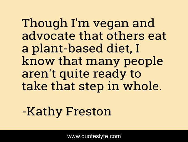 "Kathy Freston Quotes." Quoteslyfe.com, 2025. Mon. 08 Dec. 2025. <https://www.quoteslyfe.com/quote/Though-I-m-vegan-and-advocate-that-309196>.