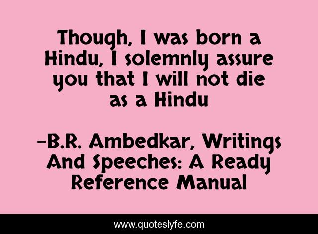 "B.R. Ambedkar, Writings And Speeches: A Ready Reference Manual Quotes." Quoteslyfe.com, 2025. Mon. 08 Dec. 2025. <https://www.quoteslyfe.com/quote/Though-I-was-born-a-Hindu-I-29793>.