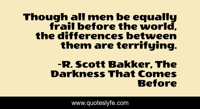 This page presents the quote "Though all men be equally frail before the world, the differences between them are terrifying.". Author of this quote is R. Scott Bakker, The Darkness That Comes Before. .