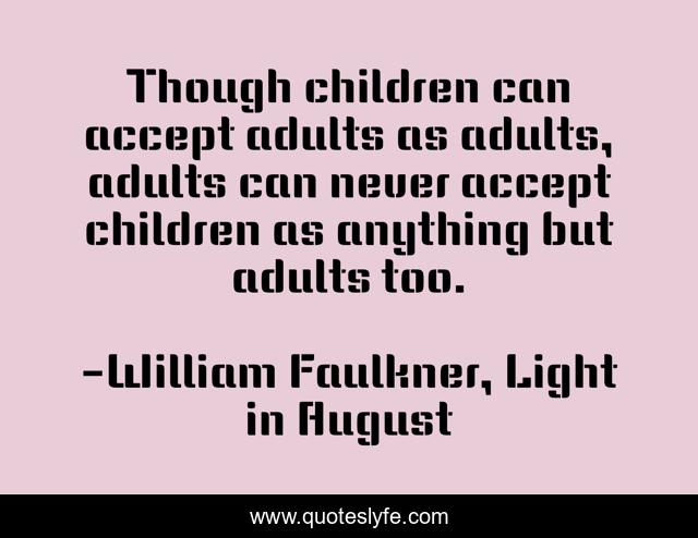"William Faulkner, Light in August Quotes." Quoteslyfe.com, 2025. Tue. 09 Dec. 2025. <https://www.quoteslyfe.com/quote/Though-children-can-accept-adults-as-adults-99415>.
