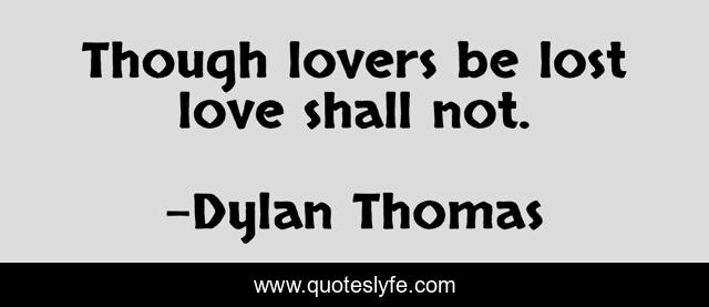 This page presents the quote "Though lovers be lost love shall not.". Author of this quote is Dylan Thomas. This quote is about lovers, love, affection,.