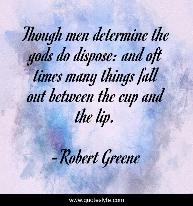 This page presents the quote "Though men determine the gods do dispose: and oft times many things fall out between the cup and the lip.". Author of this quote is Robert Greene. .