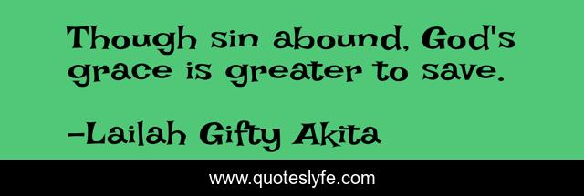 This page presents the quote "Though sin abound, God's grace is greater to save.". Author of this quote is Lailah Gifty Akita. This quote is about god, christian, grace, sin,.