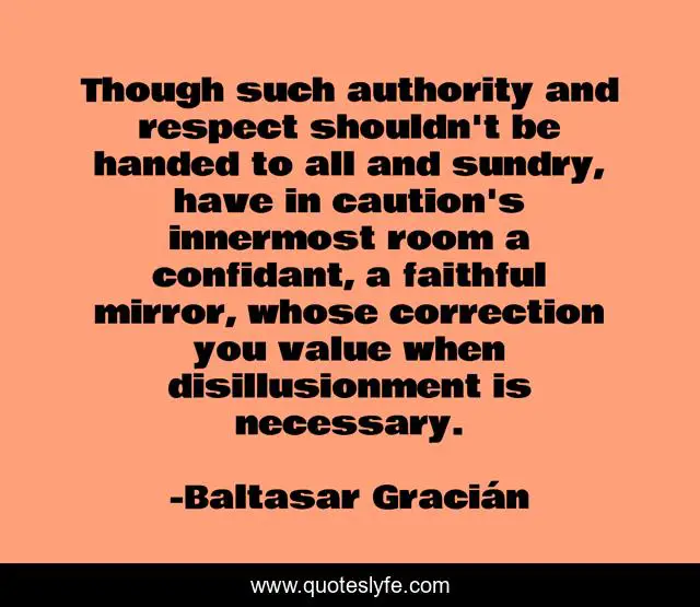 This page presents the quote "Though such authority and respect shouldn't be handed to all and sundry, have in caution's innermost room a confidant, a faithful mirror, whose correction you value when disillusionment is necessary.". Author of this quote is Baltasar Gracián. .