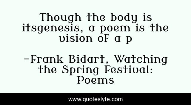 "Frank Bidart, Watching the Spring Festival: Poems Quotes." Quoteslyfe.com, 2025. Fri. 05 Dec. 2025. <https://www.quoteslyfe.com/quote/Though-the-body-is-itsgenesis-a-poem-197342>.