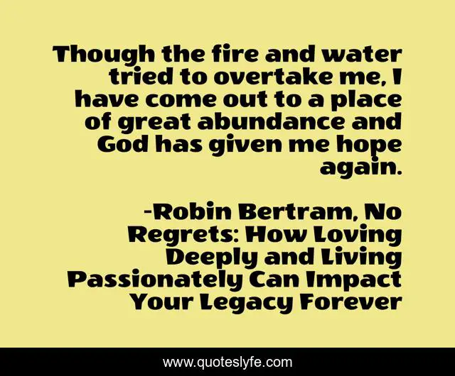 "Robin Bertram, No Regrets: How Loving Deeply and Living Passionately Can Impact Your Legacy Forever Quotes." Quoteslyfe.com, 2025. Tue. 09 Dec. 2025. <https://www.quoteslyfe.com/quote/Though-the-fire-and-water-tried-to-20021>.
