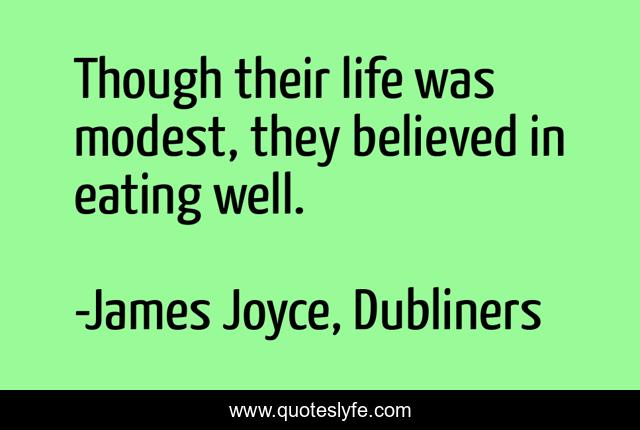 This page presents the quote "Though their life was modest, they believed in eating well.". Author of this quote is James Joyce, Dubliners. .